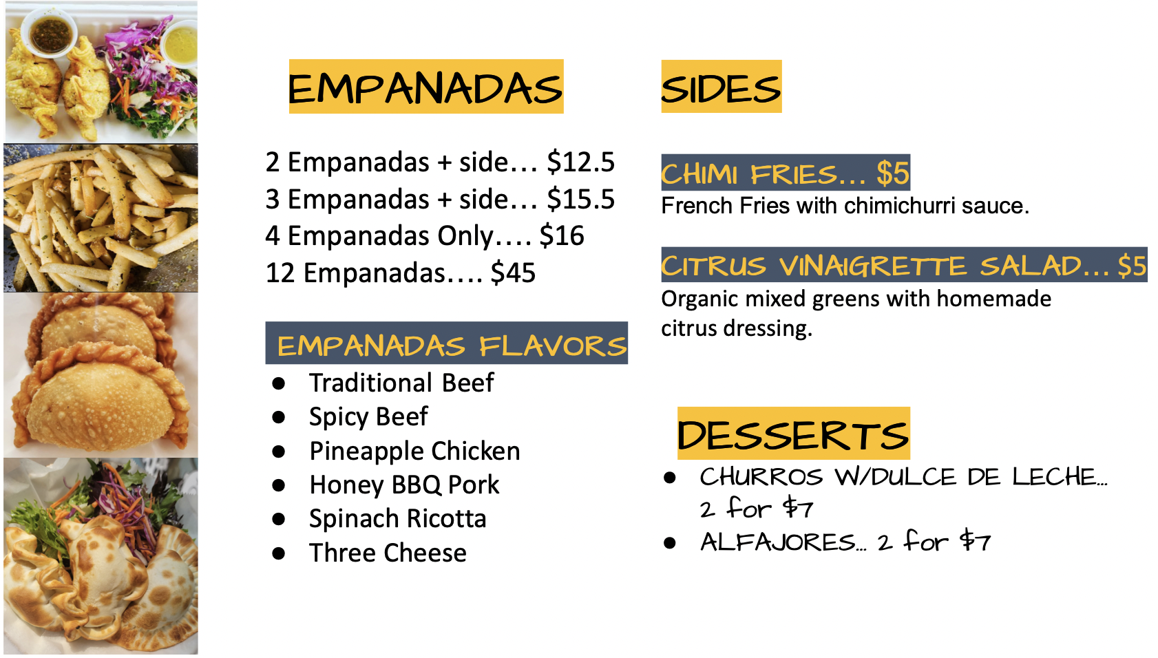 empanada food truck menu